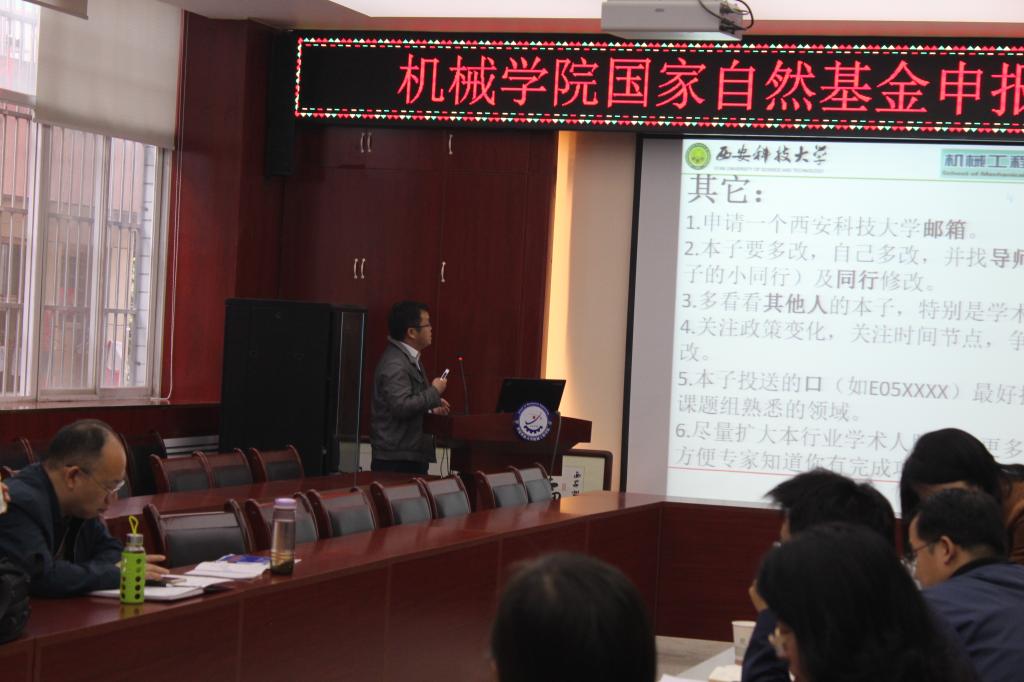 10月17日下午,机械学院在雁塔校区举办了国家自然科学基金申报技巧与经验交流会,院长张旭辉、副院长寇发荣,学科带头人马宏伟教授、薛河教授等50多名教师参加了此次活动。会议由副院长寇发荣主持。