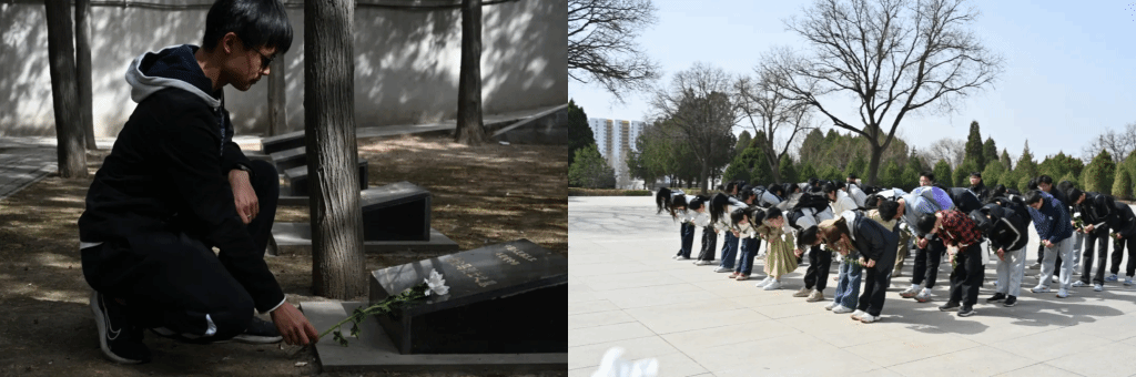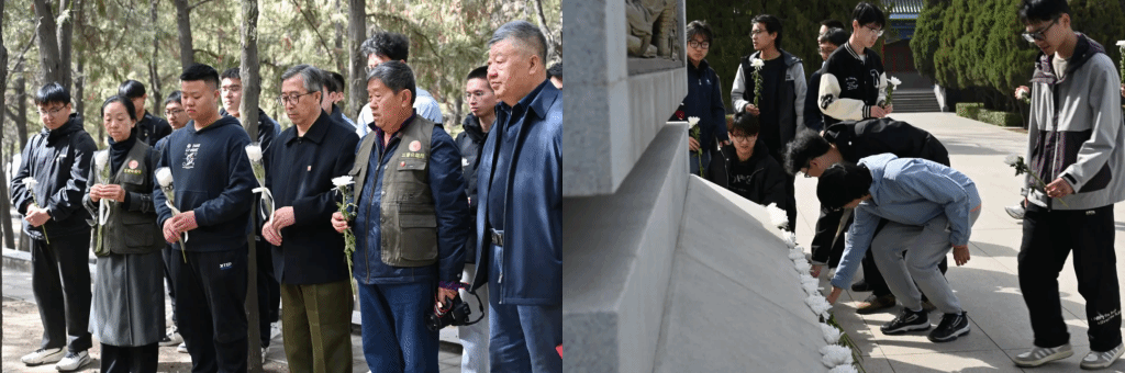 烈士陵园内,342座青灰色墓碑在苍松翠柏间庄严肃立,碑文显示英烈的籍贯涵盖河北、河南、四川等十余省份,其中29座墓碑仅镌刻姓名与部队番号。活动现场,太原市一个寻亲公益组织正在为无名烈士寻找家属,其中一位老人分享了他父亲的抗日故事和他自身的经历,为同学们呈现了一堂生动且极具意义的团课。随后,学生们在纪念碑前举行悼念仪式,并依次献上一束素菊,在清明节来临之际致敬最可爱的人。