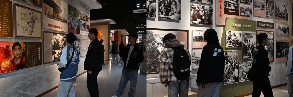 展馆中锈迹斑驳的军用水壶、磨损严重的行军背包等200余件抗战文物无声述说着峥嵘岁月。展柜内保存完好的军用地图与布满弹孔的军服形成强烈对比,泛黄的作战路线标注与衣物上密布的破损痕迹还原了革命先烈以"小米加步枪"对抗机械化侵略的壮烈史诗,学生们驻足思考,眼中满是凝重与敬意。