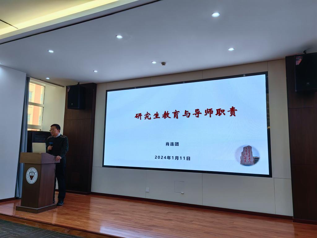 肖连团教授做了题为“研究生教育与导师职责”的专题讲座,围绕当前研究生教育动向,从概念内涵、教育分析、导师指导存在的问题、导师职责等四个方面为全体参会人员做了详细的介绍。