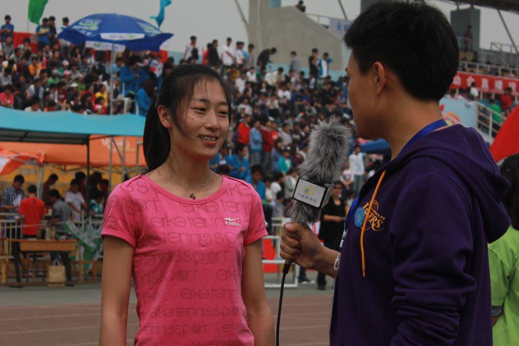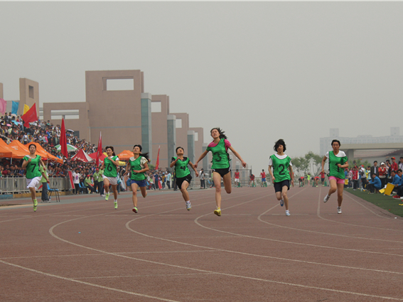4月19日上午,机械学院郭一荷同学突破自我,在100米比赛中一马当先,夺得短跑冠军!