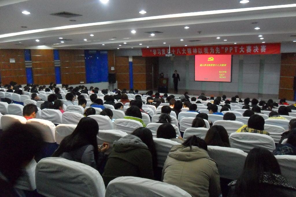13日晚,以“学习贯彻十八大精神以我为先”为主题的校PPT大赛在图书馆报告厅举行。jdb电子选手赵飞飞、崔阳经过细致的准备、新颖的设计,以精彩的现场发挥获得了评委老师和观众的一致好评,最终取得了优异的成绩。比赛结束时,陈霂老师对本次大赛选手们的表现作了点评,指出了学生们在PPT制作中还可以提升的几个方面,并为获奖者颁发了奖状。