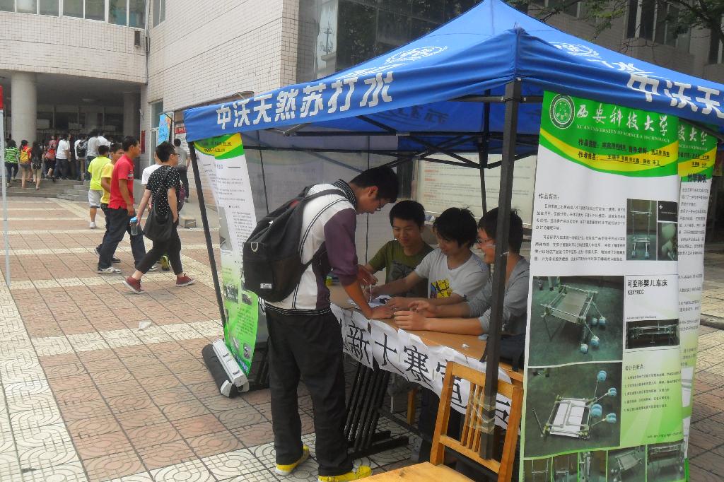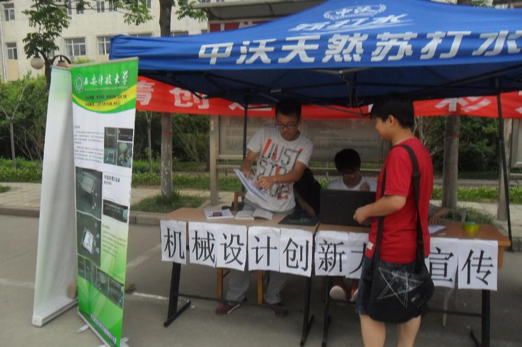 为提升全校师生对机械创新设计的认识程度,机械学院学生会在院科技部的安排下于5月13日至17日从早八点到晚八点先后在校骊绣苑和榴馨苑门口设置专题宣传点,供有意愿的同学咨询了解本次比赛各方面的信息。