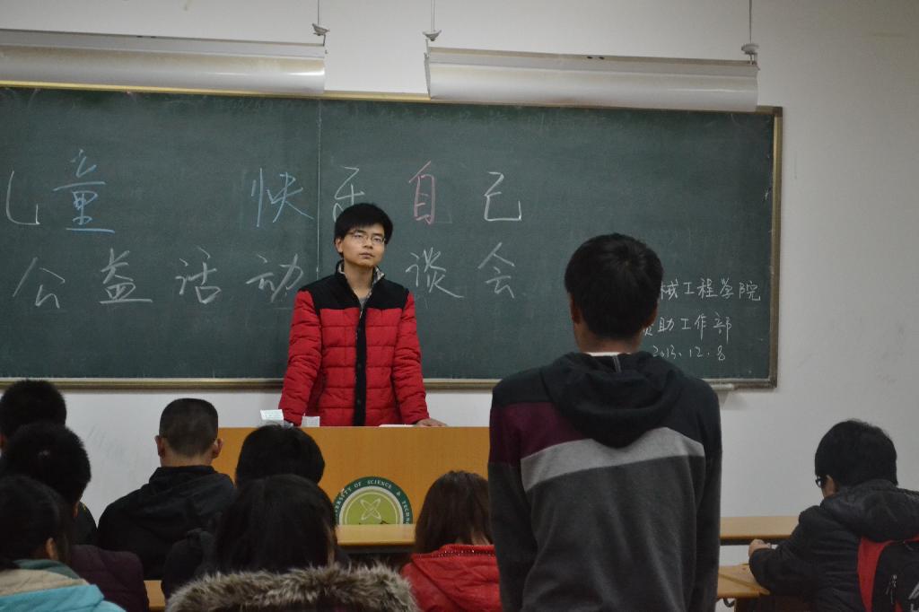 2013年12月8日晚,jdb电子游戏官方网站资助工作部在10教512召开了以“关爱儿童,快乐自己”为主题的公益活动座谈会,本次会议由大二资助工作部委员杨庚庚主持,参加特殊儿童学校之行的全体同学到会。