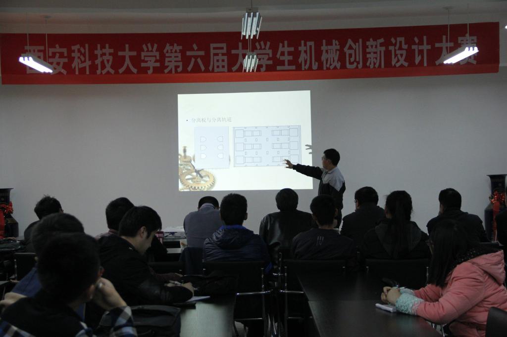 11月25日下午,jdb电子第六届机械创新设计大赛决赛在临潼校区jdb电子游戏官方网站会议室举行,本届大赛由教务处主办,jdb电子游戏官方网站承办,工程训练中心协办。jdb电子游戏官方网站机械制造及其自动化学科带头人郭卫、院长张传伟、副院长曹现刚等老师应邀担任评委,来自全校20余支参赛队伍共计100多名学生参加了此次比赛。