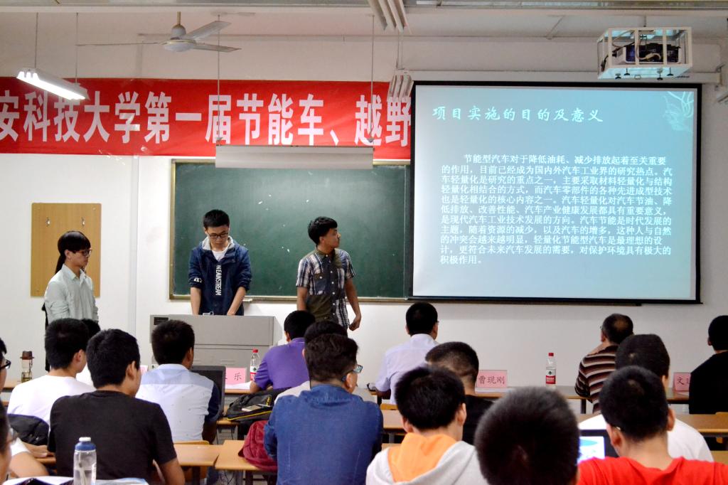 6月1日,由教务处主办、机械学院承办的jdb电子游戏官方网站第一届越野车、节能车创意竞赛决赛在临潼校区举行。经过预赛初评、来自机械学院、能源学院、测绘学院、管理学院、艺术学院的17件参赛作品最终进入决赛。决赛分PPT讲解和问辩两个环节,经过学生讲述、评委问辩,最终评出越野车竞赛一等奖2项、二等奖2项、三等奖3项,节能车竞赛一等奖2项、二等奖4项、三等奖4项。竞赛组委会将根据本次竞赛结果选拔出优秀作品代表jdb电子参加7月份在成都举行的2016中国汽车工程学会巴哈大赛和10月份在广州举行的第10届Honda中国节能竞技大赛。