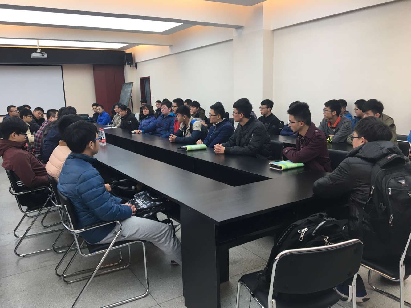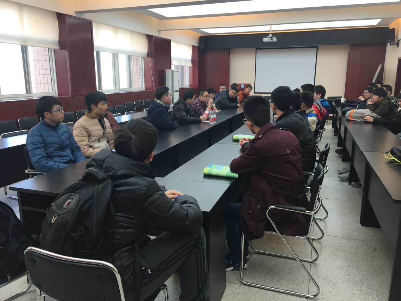会议开始,李明博博士先介绍了自己,讲述自己的求学经历,从上大学到考研,从考研到出国等,并告诫同学们不要走他之前走过的弯路;同时,以“心怀远大,志存高远”为切入点,就学生学习过程中的心态、目标、定位和发展做以梳理。其后,同学们结合自身情况争相提问,针对问题,李明博博士与唐伟副教授现场做出详细解答。最后,唐伟副教授对活动进行了总结,并鼓励同学们明确方向,努力学习。