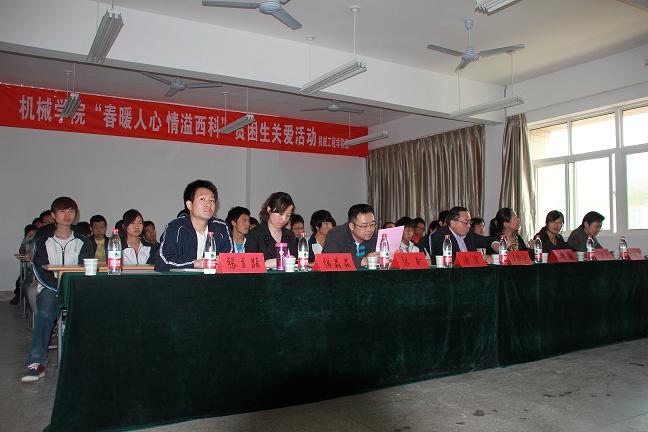 4月25日下午,机械学院在临潼校区10号教学楼501教室举行关注家庭经济困难学生“春暖人心,情溢西科”活动。党委学工部资助中心主任田园老师,机械学院分党委副书记汪卫兵副教授,机械学院各年级辅导员,学院受助贫困代表40余人参加了活动。活动由学院学生资助工作负责人芮智刚老师主持。
