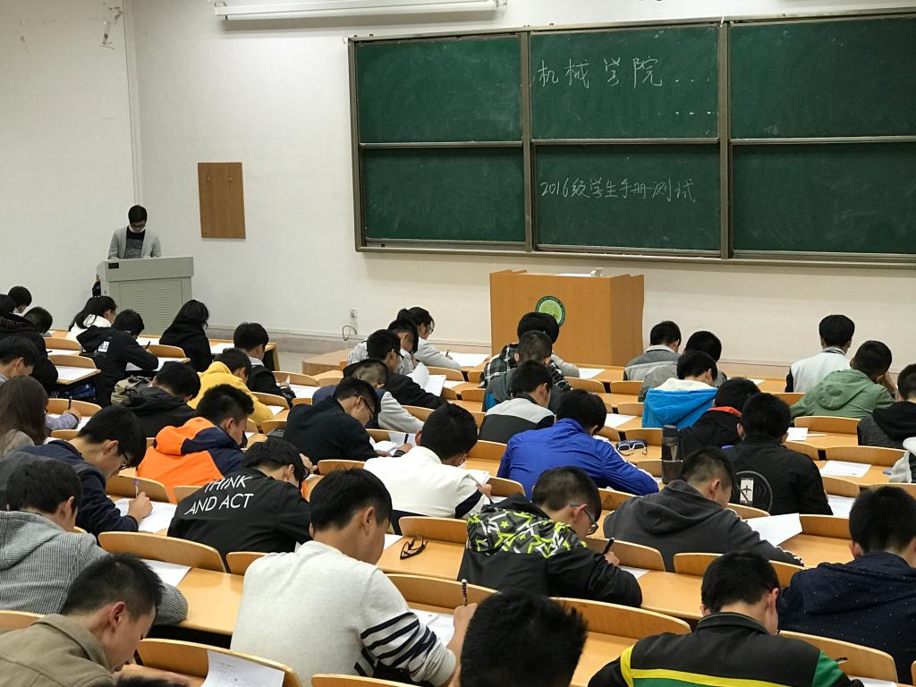 为加强新生对校规校纪的认识,提高同学们的自律意识,10月31日晚19:00-20:45jdb电子游戏官方网站于9号教学楼101、105,10号教学楼505、506、507、508、511教室同时进行了2016级学生《学生手册》考试,2016级全体新生参加此次考试,辅导员程鹏、杨芝对各个考场进行巡查,带班学生助理监考。