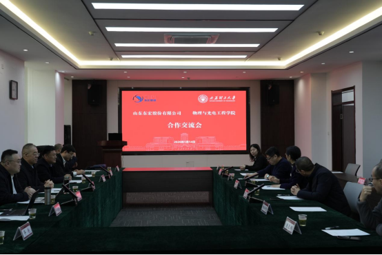 参观结束后,双方在物电南楼304B会议室举行座谈。bat365在线中国官网登录入口物电学院党委书记赵雪霞、党委副书记李巍、副院长杨玲珍、邓霄及相关学科教师代表与东宏股份来访团队展开交流。