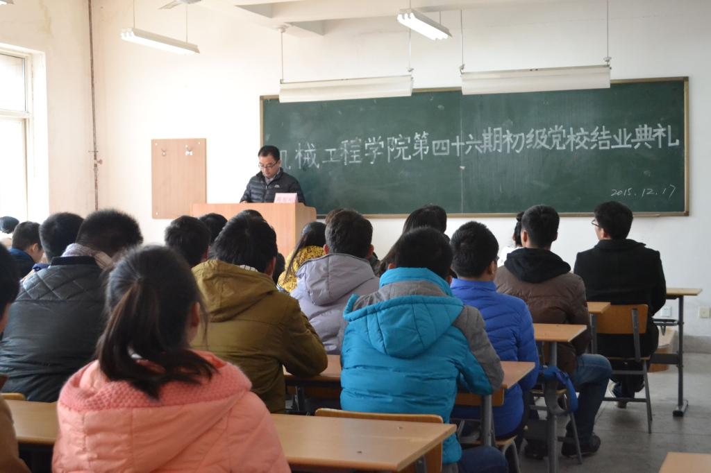 12月17日中午,机械学院第四十六期初级党校结业典礼在临潼区10教506教室举行,学院党委副书记李婉丽出席典礼并讲话。机械学院全体学工干部、第四十六期初级党校学员代表参加了结业典礼。