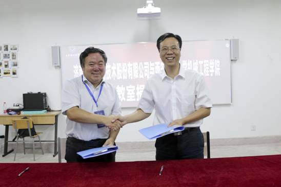 9月8日上午,“济南科明数码技术股份有限公司与jdb电子游戏官方网站VR教室捐赠共建仪式”在临潼骊山校区jdb电子游戏官方网站402室举行。济南科明数码技术股份有限公司董事长陈清奎,经理刘海鹏,jdb电子游戏官方网站副校长王贵荣,教务处处长张传伟,jdb电子游戏官方网站院长张旭辉,副院长赵栓峰出席仪式。王贵荣副校长与陈清奎董事长代表双方签订了捐赠协议。
