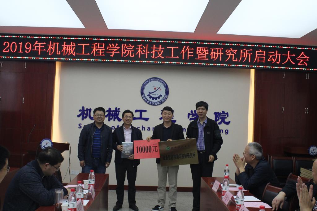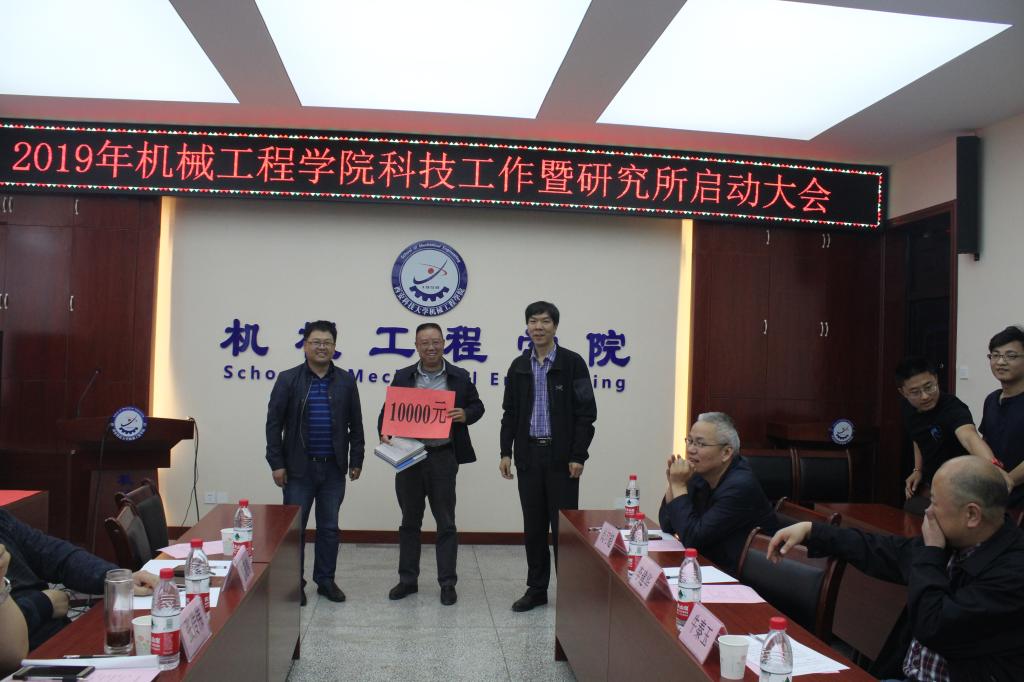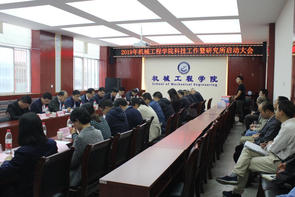 59日下午, 机械学院在雁塔校区学院大会议室召开了2019年科技工作暨研究所启动大会,科技处处长文虎,学院班子成员、教授委员会成员、系主任、研究所负责人及骨干成员、青年教师代表等40余人参加。会议由副院长寇发荣主持。
