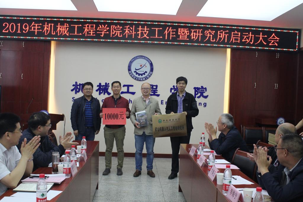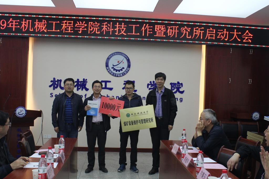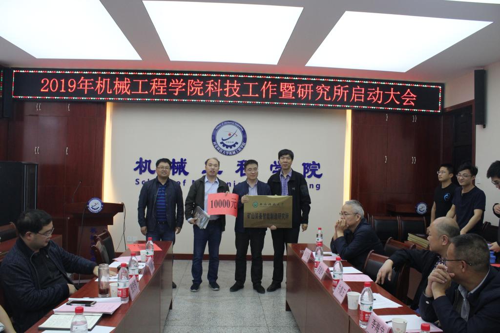 寇发荣首先宣读了学校《关于公布第一批校级研究所(中心)立项建设的通知》文件,学院推荐申请的矿山机器人与人工智能研究所、智能车辆研究所、设备智能检测与控制研究所、煤矿设备维护与管理研究所、车辆振动控制与利用研究所、矿山装备智能制造研究所、智能设备开发与评价研究所、增材制造技术研究所、矿山机电液系统可靠性研究所、功能材料特种加工研究所等10个校级研究所获准设立;同时,公布了《关于对机械学院校级研究所启动资助的方案》:本年度对依托学院建设的校级研究所给予一定经费资助,以后每年的具体资助额度按照各研究所前一年的业绩予以调整。