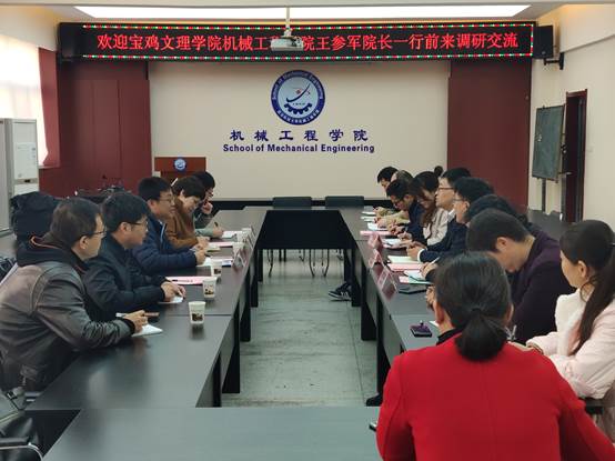 11月14日上午,宝鸡文理学院jdb电子游戏官方网站王参军院长一行五人来机械学院进行调研交流,机械学院院长张旭辉、副院长赵栓峰、副书记李婉丽和机械学院各系主任及支部书记等参加了交流座谈。