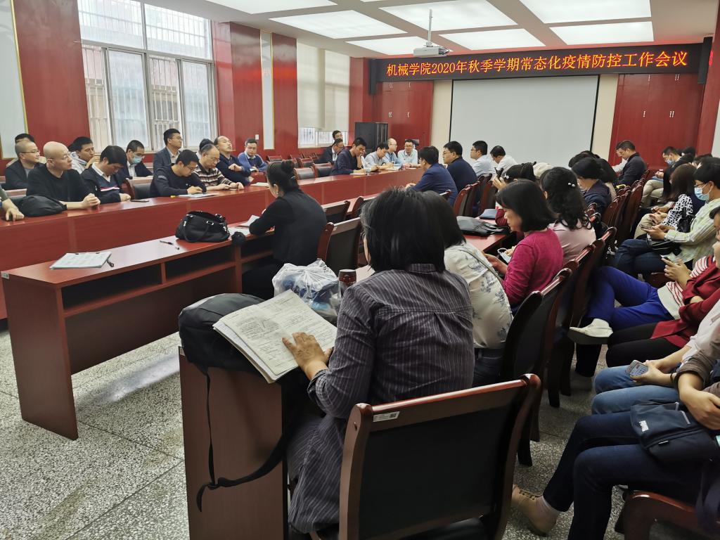 9月23日下午,机械学院在雁塔校区北院召开2020年秋季学期常态化疫情防控工作会。党委书记张金来,院长张旭辉,副院长寇发荣、赵栓峰出席会议,学院全体教职工参加会议。