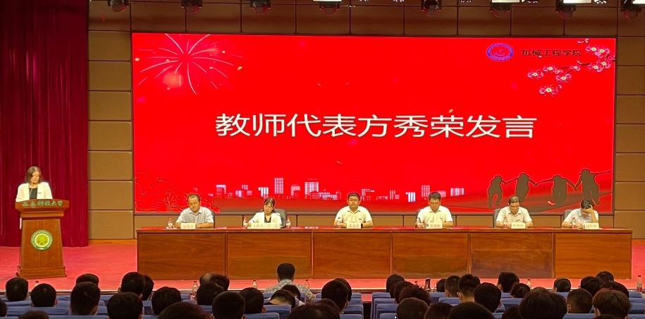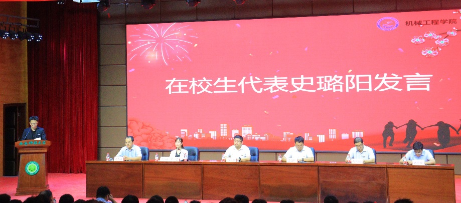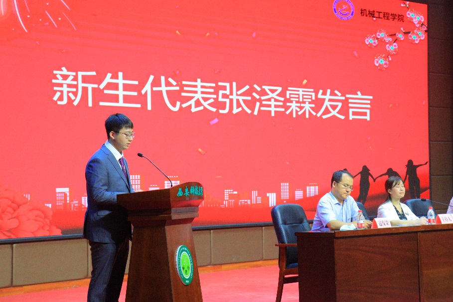 会上,教师代表方秀荣教授围绕“独立思考、学会包容,协同精神、创新能力培养”等对新生学习生活提出中肯建议;国家励志奖学金获奖学生史璐阳代表在校生向新生分享了自己的学习心得和体会;来自机械设计制造及其自动化专业(卓越班)的张泽霖同学代表全体新生作了表态发言。与会师生在大会上观看了 “中国自强之星”“全国公益之星”“全国煤炭行业优秀共青团员”“陕西省优秀毕业生”等机械学院优秀学生典型宣传片——《青春榜样,助力启航》。