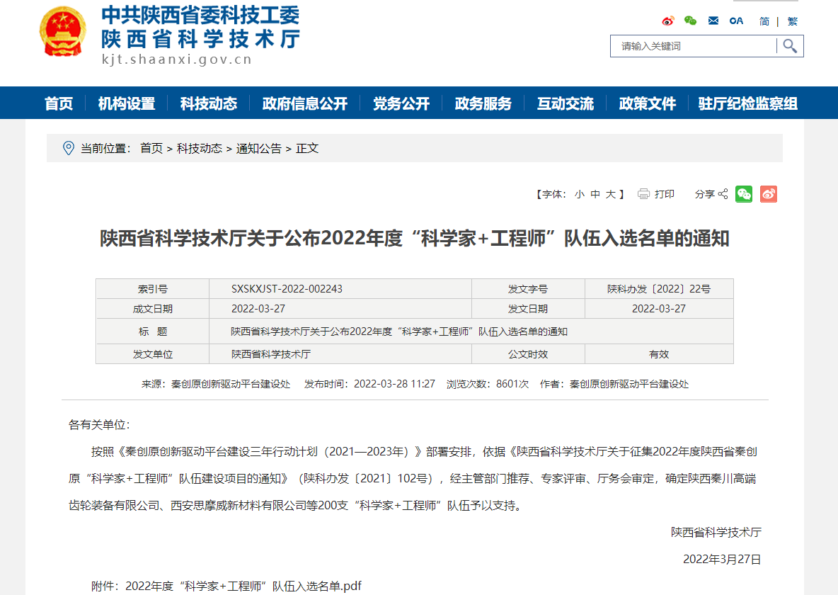 据悉,陕西省秦创原“科学家+工程师”队伍,是指以高校和科研院所专家人才(科学家)为核心,以企业工程技术人员等(工程师)协作为基础,以企业或高水平创新平台为依托,以攻克产业重大技术难题、促进科技成果转化、孵化科技企业为目的,形成科学家与工程师相对固定合作模式和工作机制的科研(产业)创新团队。