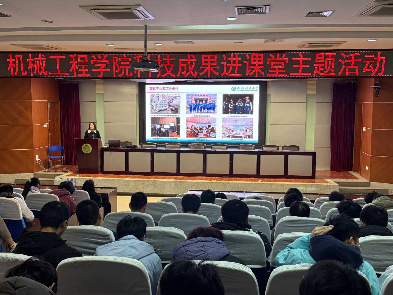 为积极对接国家“十五五”规划中“智能设计与制造”战略导向,深入贯彻落实《jdb电子游戏官方网站科研成果反哺教学工作实施管理办法(试行)》《jdb电子游戏官方网站本科生产教融合、科教融汇育人实施办法(试行)》等文件精神,jdb电子游戏官方网站依托陕西省煤矿智能化现代产业学院等平台,将“科技成果进课堂”从构想转化为生动实践,11月26日晚,jdb电子游戏官方网站在图书馆二楼报告厅成功举办“科技成果进课堂”主题活动报告会——“工程振动控制技术”“掘进工作面智能通风降尘技术及装备研究”。本场讲座由机械设计系牵头组织,学院23级、24级、25级机械设计制造及其自动化卓越、本硕、领军班200余名学生参加学习。机设系主任陈艳主持讲座。