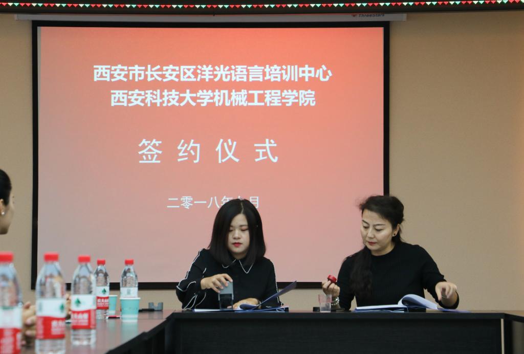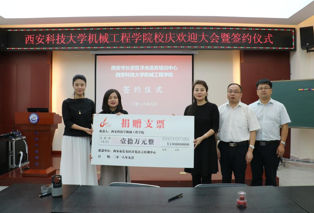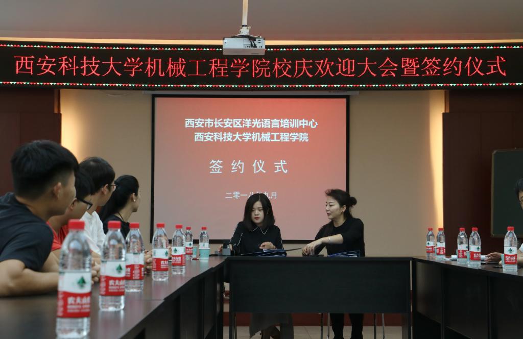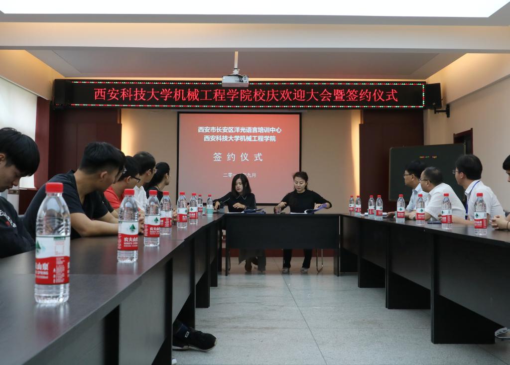 2018年9月14日上午,洋光外语外语培训机构一行人赴jdb电子游戏官方网站签署阳光外语—jdb电子游戏官方网站企业捐赠协议,签约仪式在临潼校区机械学院会议室进行,仪式前双方就人才培养、外语教学等议题进行了友好深入的交流,并由洋光外语培训机构与jdb电子游戏官方网站分别代表两家单位签署了捐赠协议。参会的学院领导有机械学院党委书记汪卫兵、院长张旭辉、党委副书记李婉丽、副院长寇发荣,学院30余名师生也参加了签约仪式。