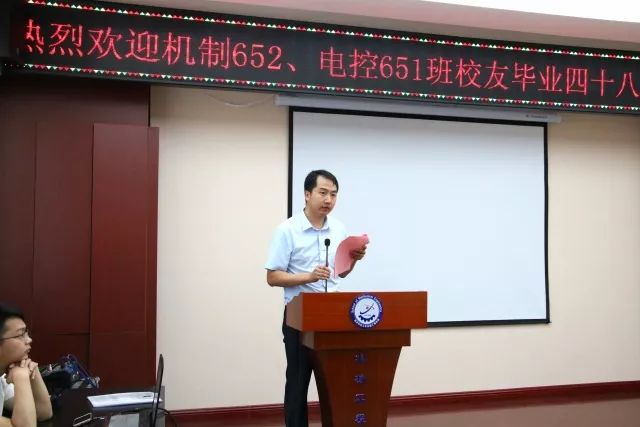 樊建武老师首先致欢迎词,表达了对校友回访母校的热烈欢迎,同时他给大家讲诉jdb电子的沿袭历史,指出通过对jdb电子游戏官方网站源头的最新考证,jdb电子的源头不止北洋大学。张传伟院长介绍jdb电子游戏官方网站发展情况,由一开始的矿山机电这一单一专业,发展到机械制造和机械电子两大体系,再到现在门类齐全,体系完整。电控学院杨勇书记总结了学院的发展历程和专业特色,学院历来重视实践性教学,在校内设有常年开放实验室,加强与企业合作建立良好关系,开展学生课外科技活动,在全国大学生数学建模、全国大学生电子竞赛中多次获奖。