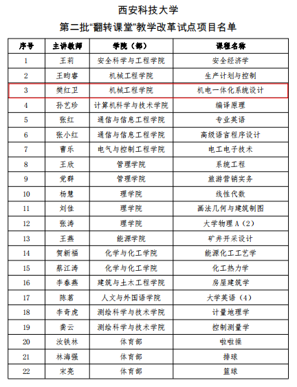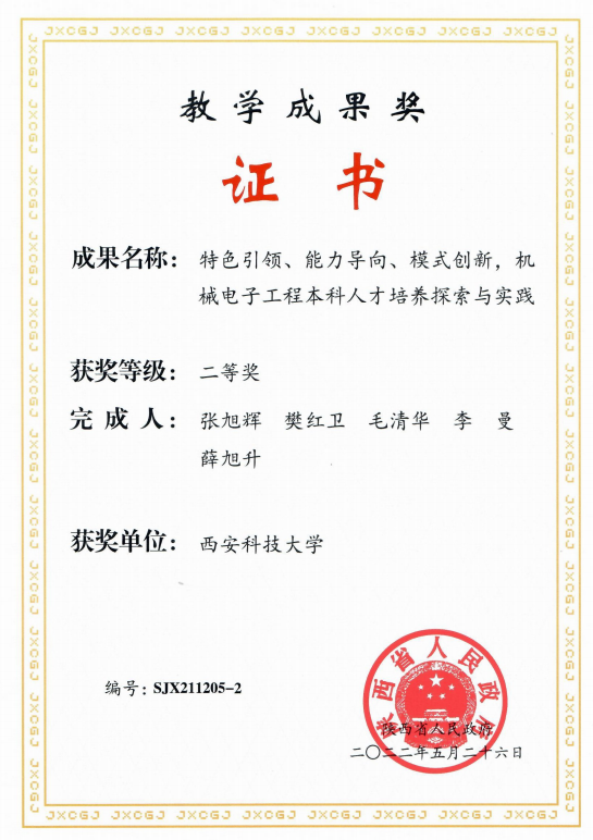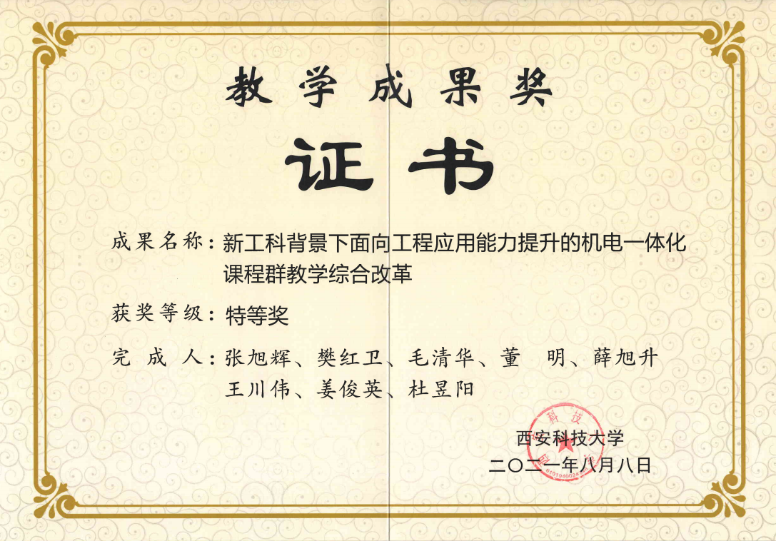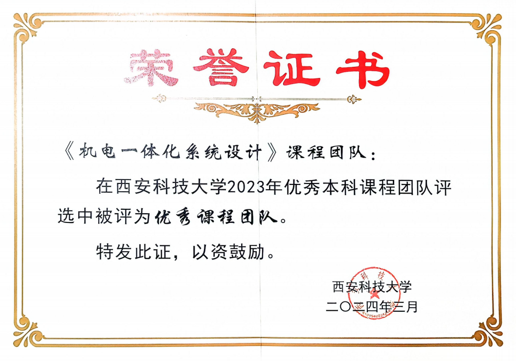 jdb电子游戏官方网站《机电一体化系统设计》课程组在张旭辉教授、樊红卫副教授带领下,坚持为党育人,为国育才,立德树人根本宗旨,从教材编写到课程建设,开展了全方位的教育教学改革,入选了陕西省一流课程,支撑了机械电子工程专业入选国家级一流专业建设点。主要建设成果如下: