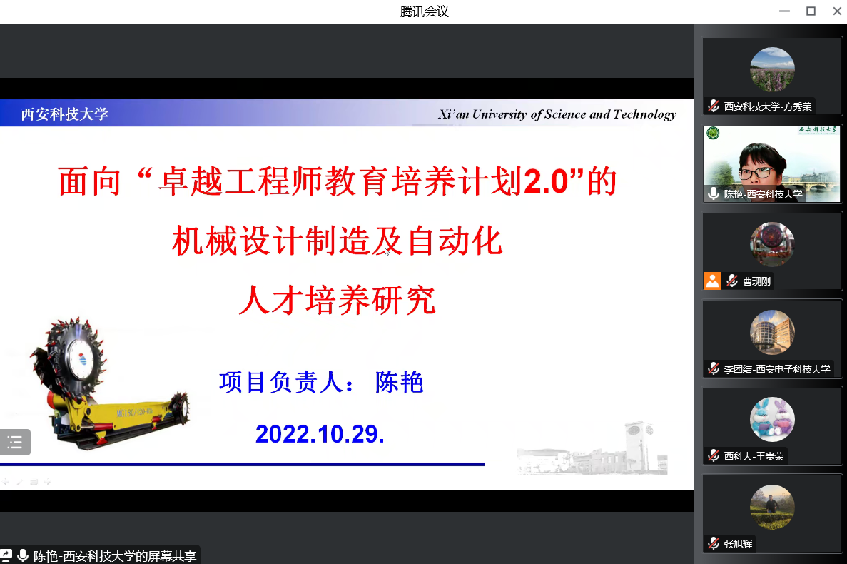 会上,王贵荣副校长致欢迎词。项目负责人陈艳副教授围绕研究现状与背景分析、研究内容与目标、研究方法与技术路线、具体举措及研究计划五个方面介绍了“面向卓越工程师教育培训计划2.0的机械设计制造及其自动化人才培养模式改革与实践”项目。专家组对该项目推进价值和实施意义给予了高度肯定,并从项目内容、思路、方法和成果等方面进行了点评,结合基于双碳目标从课程体系建设、专业培养方案修订、卓越班及普通班差异性建设以及新形势下校企合作模式探索等方面做了具体指导。专家点评专业严谨,前瞻性、指导性强,为后续项目推进和专业建设提供了极具参考价值的意见和建议。