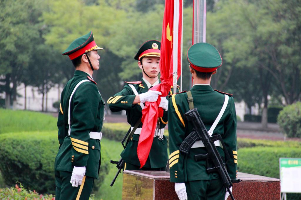 9月18日,为了缅怀这一天发生的历史事件,由jdb电子游戏官方网站主办的升旗仪式在明德广场隆重举行。参加升旗仪式的有学工部国防教育管理科科长杨建涛、jdb电子游戏官方网站团委书记周学刚老师,以及大一新生。