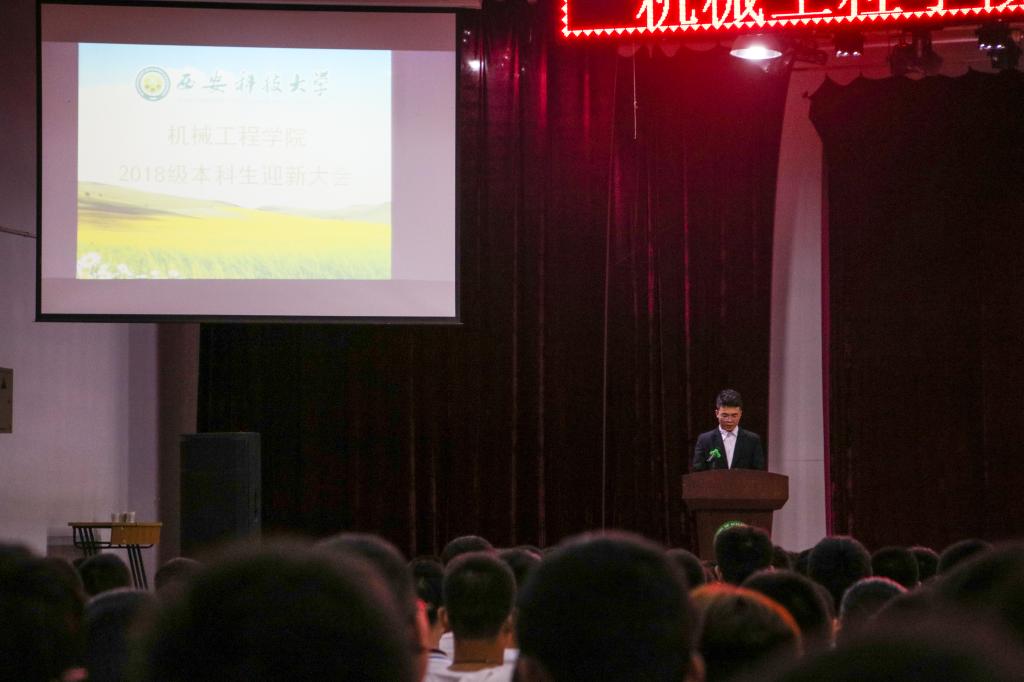 接下来,机卓二班新生代表席杰同学在会议中发言,他表达了发愤图强,积极进取,努力学习的自信,并代表18级新生表达了用良好乐观的心态面对大学生活的决心。