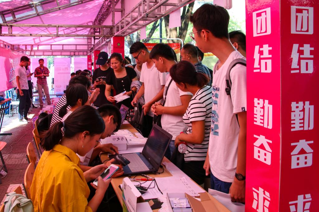迎新接待处人头攒动,但仍然秩序井然。迎新工作人员用百分百的热情去面对每一一个新生以及家长,积极解决新生的问题 为他们送去温暖。