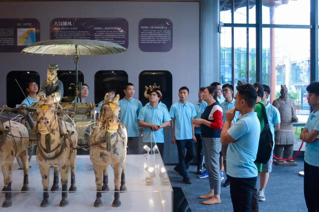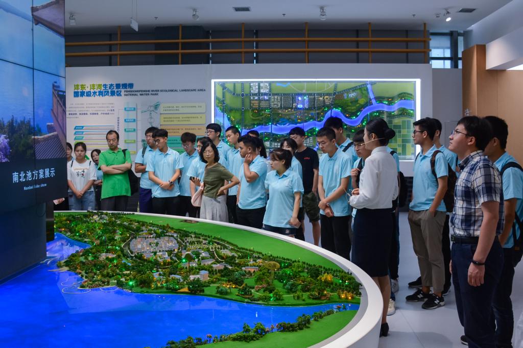 下午实践团先参观了昆明池景区,昆明池原是为西汉汉武帝练习水师之用,后来变成了泛舟游玩的场所。紧接着实践团参观了自贸产业园和自贸新天地,自贸产业园全称沣东新城现代服务贸易创新示范园,位于西咸新区沣东新城核心板块,占地面积约7平方公里。2016年国务院批复在西咸新区开展服贸试点,园区成为服贸试点的核心承载区;自贸新天地是西咸新区践行国家“一带一路”倡议、在自贸区发展大文化产业的重要承载项目,也是陕西文化自贸区建设的积极尝试和探索。