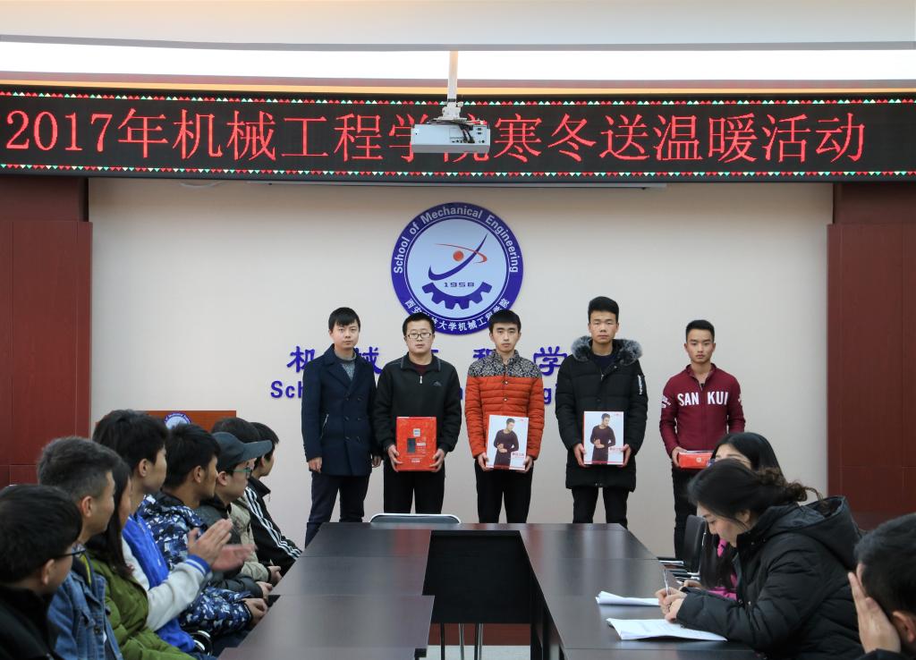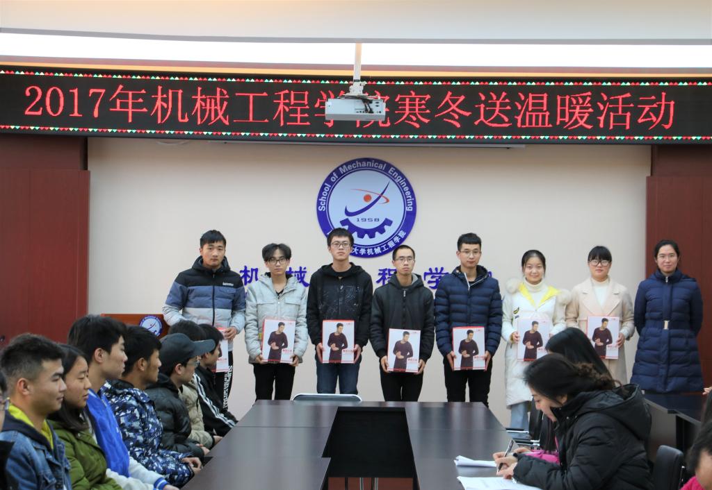 2017年12月18日,为切实解决家庭经济困难的学生寒冬御寒问题,关心和帮助经济困难同学,为他们送去温暖,jdb电子游戏官方网站在十教320会议室举行了寒冬送温暖活动。jdb电子游戏官方网站党委副书记李婉丽老师、各级辅导员老师及受助学生共同参加了此次活动。
