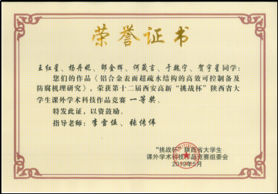 李雪伍多年来专注于“表面工程与摩擦学”研究工作。自2017年进入jdb电子参加工作以来,李雪伍主持国家自然科学基金面上、青年项目、陕西省创新能力支撑计划项目、陕西省自然科学基础研究计划项目、中国博士后科学基金项目、jdb电子游戏官方网站“优青”科技基金项目、国家及中科院重点实验室开放基金项目等。他始终坚信教学与科研相辅相成、密不可分,坚持教学与科研协同育人,才能更好地培养一流学生、成就卓越人才。结合个人“仿生功能表面”研究方向,鼓励对仿生学感兴趣的本科生提前接触研究课题,以生物与自然为灵感,启迪并激发学生创新思维,培养学生创新能力。近三年,李雪伍指导学生在金属表面设计并构筑了多尺度、多形态、且具有“荷叶效应”的超疏水微纳结构,相关作品在“互联网+”“大挑”“小挑”等创新创业及科技作品竞赛中获国家级及省级奖励10余次,并指导4项国家及陕西省大学生创新创业训练计划项目。尤其在以“自然·和谐”为主题的2022年第十届全国大学生机械创新设计大赛中,李雪伍指导学生将“超疏水功能涂层设计”引入作品中,荣获全国二等奖1项,陕西省一等奖2项。