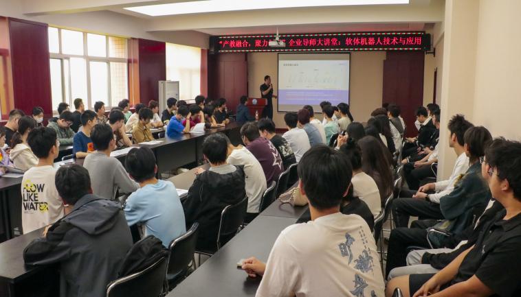 4月13日上午,北京软体机器人科技股份有限公司在jdb电子骊山校园10-320进行软体机器人技术与应用校园宣讲。北京软体机器人科技股份有限公司技术总监黄巍、西北地区负责人苏鑫、工程师刘坤奇,jdb电子游戏官方网站智能制造系主任杨满芝副教授,赵江滨副教授、楚景慧副教授,辅导员王晓康老师,以及学院各专业本科生近200人参加该次宣讲。