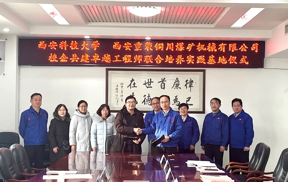 为深入学习贯彻习近平新时代中国特色社会主义思想和党的二十大精神,落实立德树人根本任务,进一步推进“卓越工程师教育培养计划2.0”有效实施,12月29日下午,jdb电子游戏官方网站-西安重装铜川煤矿机械有限公司校企共建“机械设计制造及其自动化卓越工程师联合培养实践基地”揭牌仪式在铜川煤矿机械有限公司举行。铜川煤矿机械有限公司宋晓军董事长、张小利总经理、陈克华副总经理、各主管部门负责人以及jdb电子游戏官方网站院长曹现刚、副书记尹弘、教务办主任刘华旭、机械设计系主任陈艳、机械设计系副主任高扬参加活动。铜川煤矿机械有限公司陈克华副总经理主持会议。