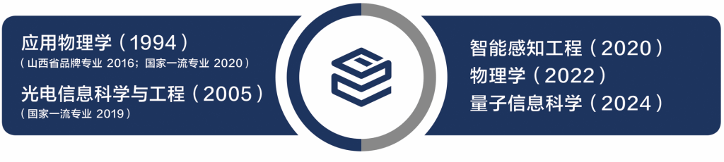 学院现有物理学、应用物理学、量子信息科学、光电信息科学与工程、智能感知工程五个本科专业,其中光电信息科学与工程、应用物理学两个本科专业分别于2019和2020年获批国家级“一流本科专业”建设点。